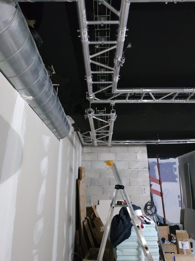 Nous avons effectué toutes les mesures et préconisations acoustiques, la fourniture et la pose des structures et de tous les équipements et les câblages Audio, Vidéo, Éclairage, Streaming et réseaux de pilotage.